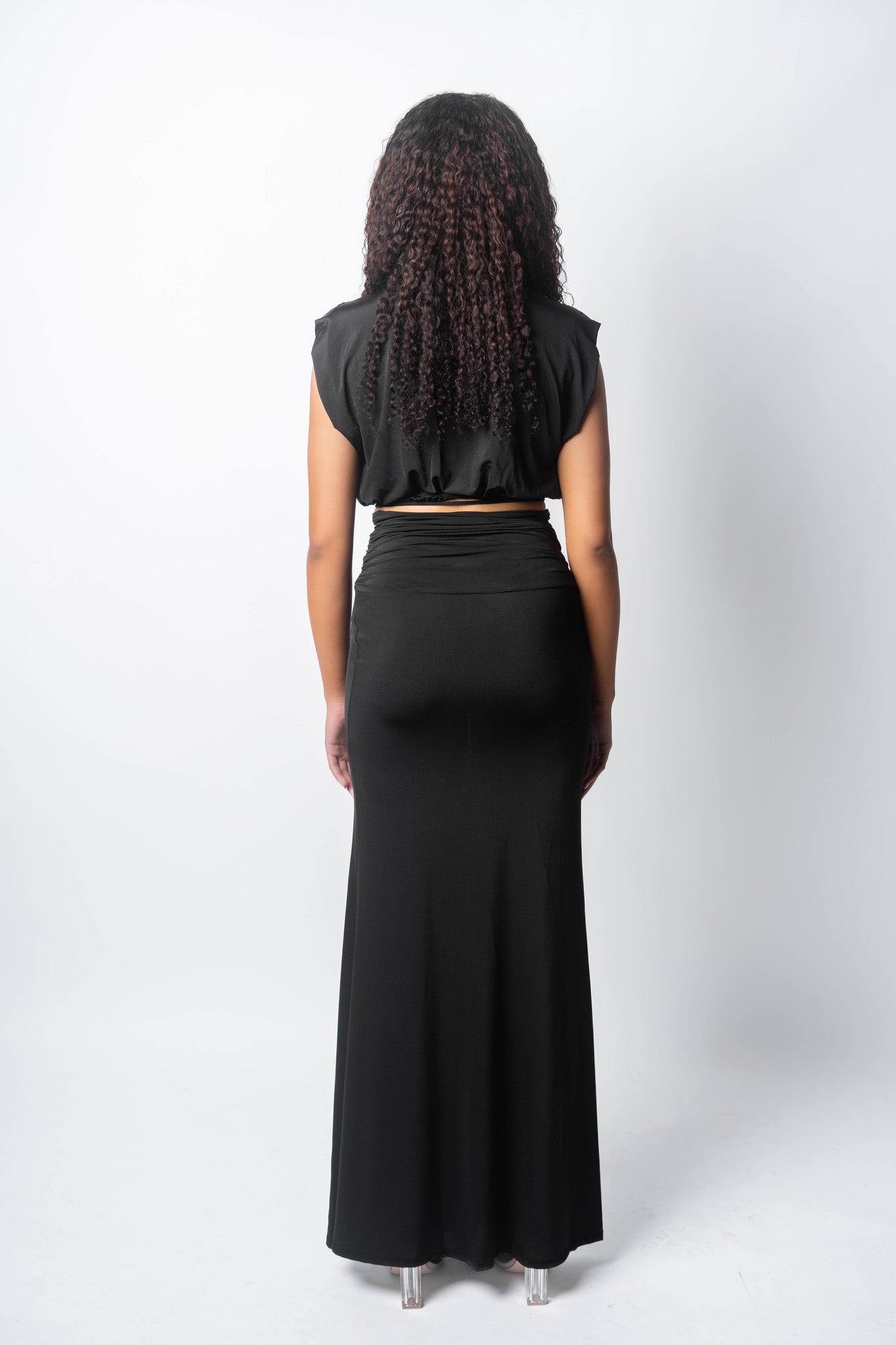 This chic & classy two-piece set is sure to turn heads! Cook up a smokin' look with the cropped top featuring a plunging neckline & two waist-flossing ties. The maxi skirt's ruching & thigh-high slit add a sizzling' spin for your next b-day bash, girls' night, or date night! Light up the night in this showstopping set - a look that brings fire and confidence to any ensemble. Get ready to dance 'til dawn and be the center of attention!