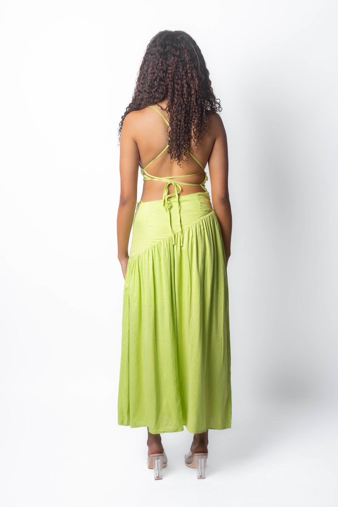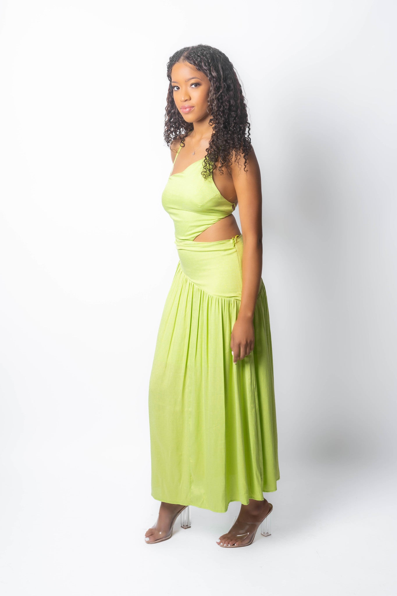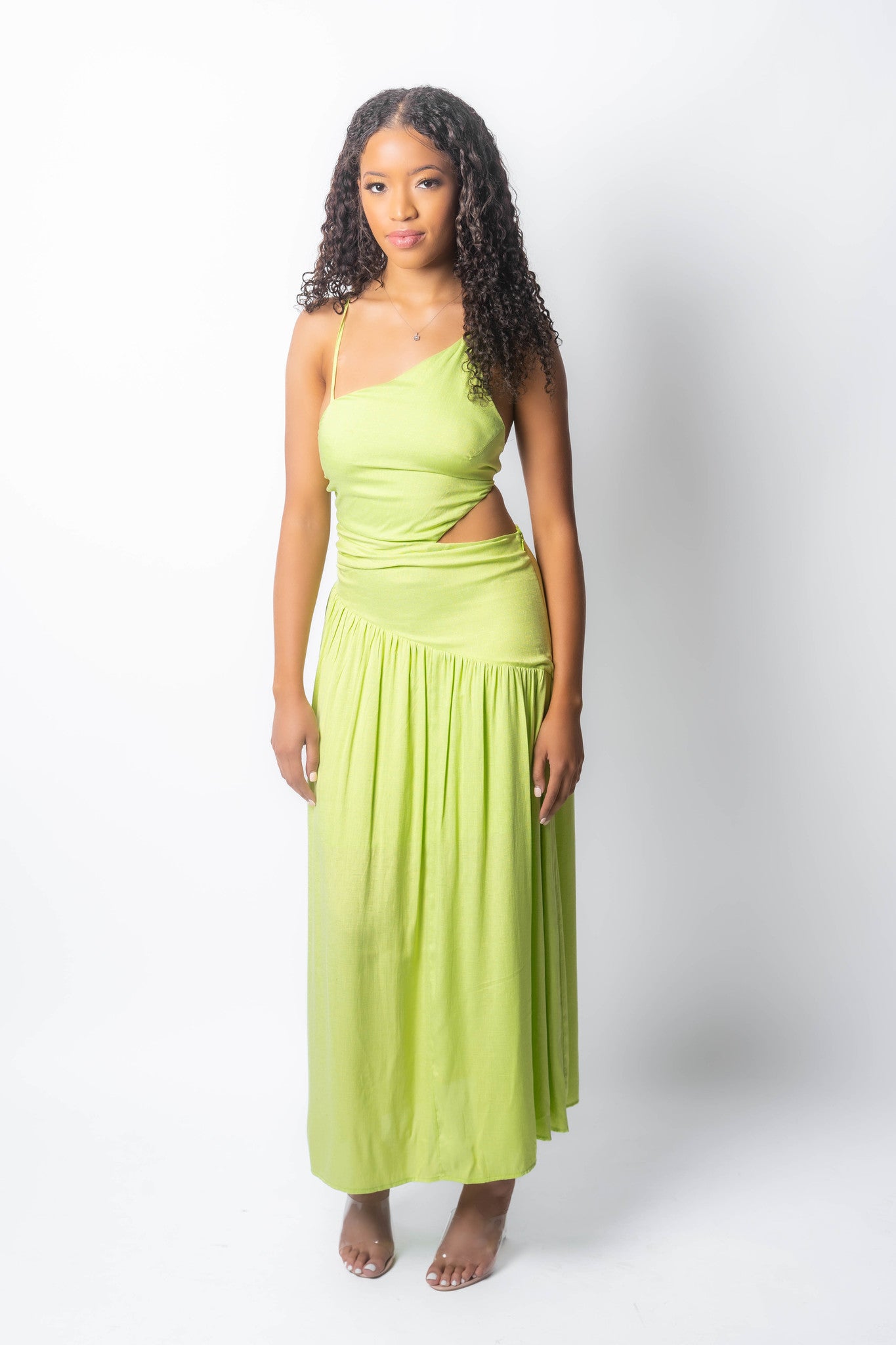 Be the life of the party and discover your fierce sense of style with this curve-sculpting maxi dress. Featuring an asymmetrical neckline, drape style, and side cutout, it's the perfect mix of drama and sophistication. Flaunt a bold statement with the flirty tie detail at the back. Perfect for special occasions, glamorous events, and soirées, this bold dress is sure to turn heads and make a statement. Take a risk, make a move, and step out with style and confidence!